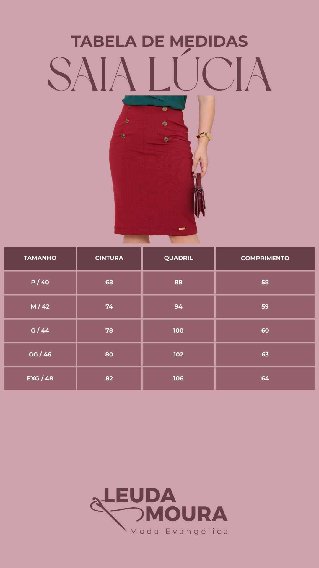 A Saia Lúcia é a união perfeita entre o clássico e o contemporâneo, pensada para a mulher evangélica que gosta de expressar sua personalidade com estilo e modéstia. Com um design que valoriza a silhueta, ela se destaca pelos detalhes únicos.