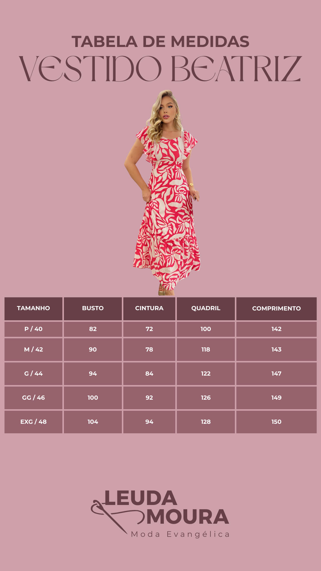 O Vestido Beatriz é a peça dos sonhos para a mulher evangélica que quer se sentir encantadora e romântica em momentos especiais. Com um design que esbanja delicadeza e feminilidade, ele é a escolha perfeita para celebrar a sua beleza e fé.